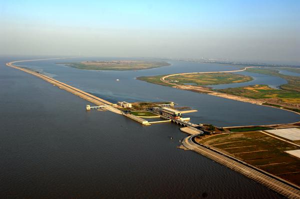 青草沙水源地原水工程是上海市解决饮用水水源的重大民生工程,包括青草沙水库、长兴岛域输水管线、长江原水过江管、五号沟泵站、严桥支线工程等,供水规模719万m3/d,总投资125.7亿元。 青草沙水库位于长江口南北港分流口,水库面积66.26km2,环库大堤总长48.41km,有效库容4.38亿m3,为国内外最大的河口江心蓄淡避咸水库。