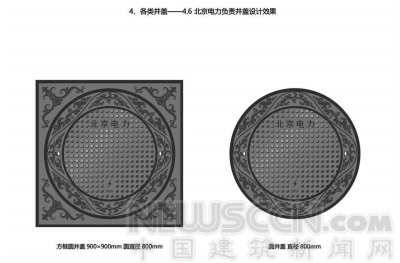 与此同时,各类箱体的底座全部为古铜色的不锈钢材质,且将占路的箱体移到草坪中,还路于行人。道路上的各类井盖以方形为主,与步道上的方形大理石协调,在维护上也很方便,井盖上面还做了如意和莲花的装饰。树池箅子从原来的铸铁全部更换为带有祥云图案的不锈钢。