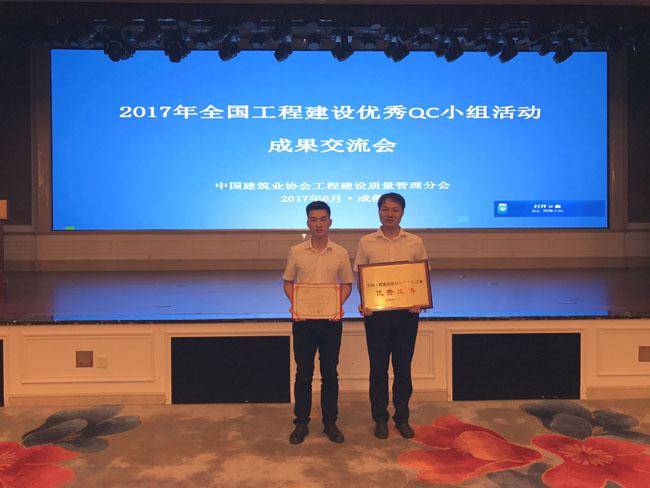 6月26日至29日,2017年全国工程建设优秀QC小组活动成果交流会在成都双流召开,中建三局二公司基础设施公司武汉绿地中心项目QC小组的成果《立面曲变巨柱爬模技术创新》参加本次成果发布,经过专家组严格评审,该成果脱颖而出,以小组第二名和发布第一名好成绩获得2017年全国优秀质量管理小组,并被中建协推荐到中国质量协会,为公司在2017年QC成果发布先拔头筹。