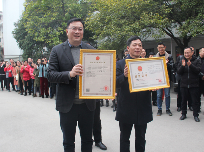 1月24日,广西建工集团第四建筑工程有限责任公司捧回了建筑工程施工总承包特级资质和建筑行业(建筑工程、人防工程)两项甲级设计资质证书。这标志着广西建工四建取得了进军建筑工程高端市场的通行证,从此迈入了建筑施工行业“特级方阵”。