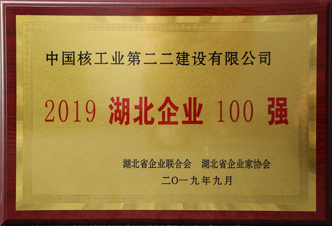 中核二二公司连续9年荣列湖北企业100强并获“双优”称号