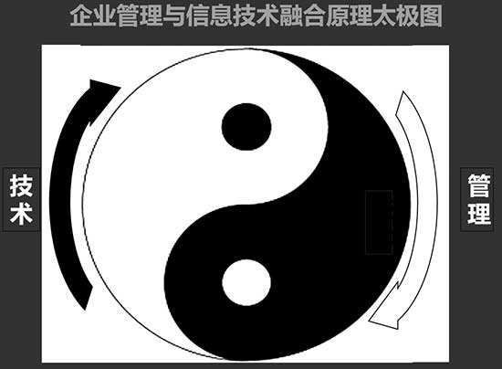 如何实现信息互联技术与企业管理的深度融合呢?中华传统文化的哲学智慧给我们提供了良好的启发。关于企业管理与信息技术融合的原理,我们可以用一张形象的太极图来表达。